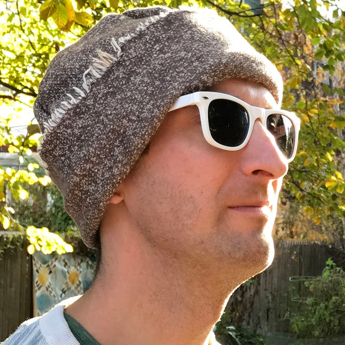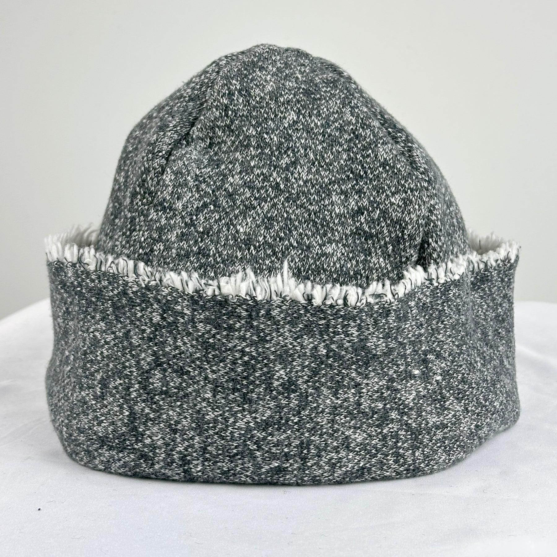 If you think wool or acrylic hats are itchy, try a hat that isn't either! This is thick, soft large loop terry. The band's fringe is the fabric's naturally shaggy selvedge.